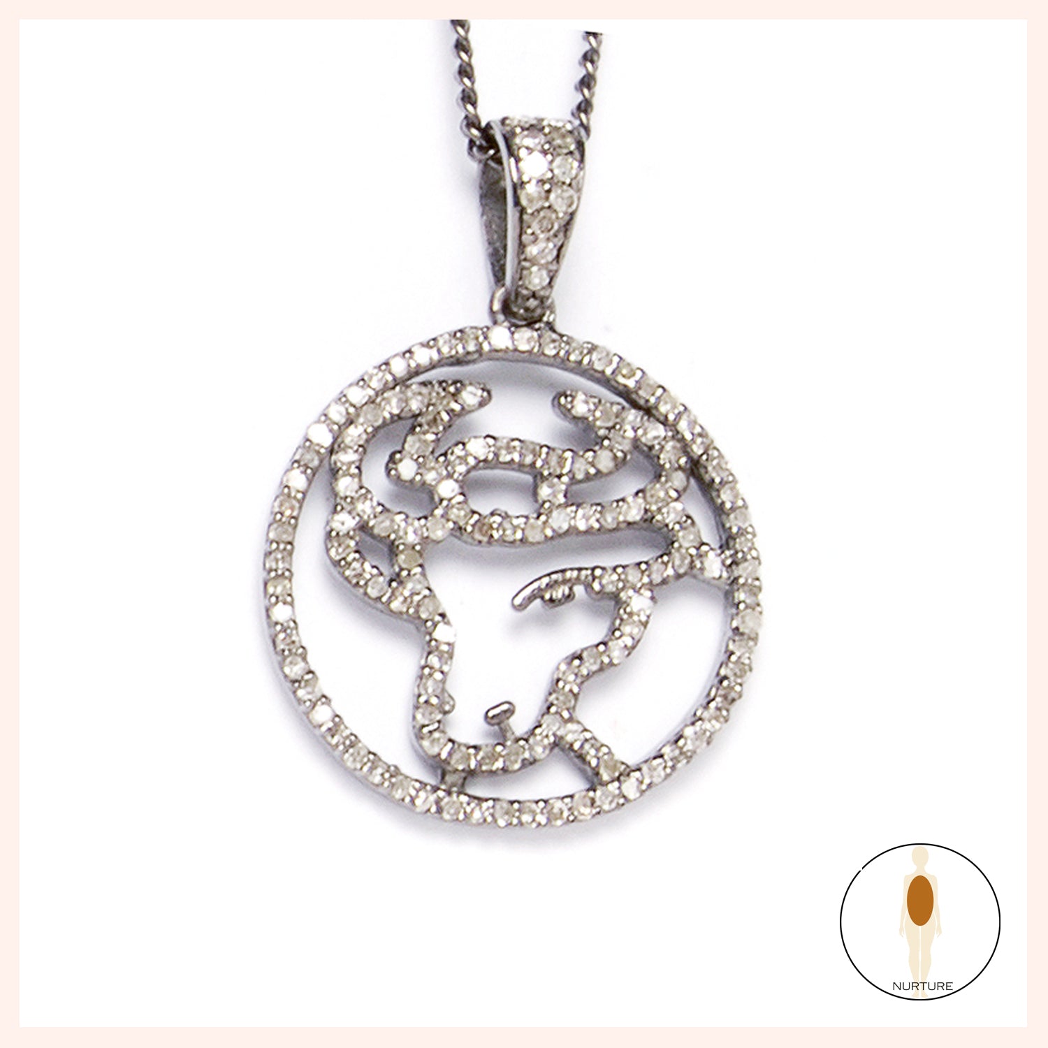 C Shashona’s handcrafted black diamond Taurus necklace represents the Horoscope of the bull. The Taurus Horoscope sign symbolizes sensuality.