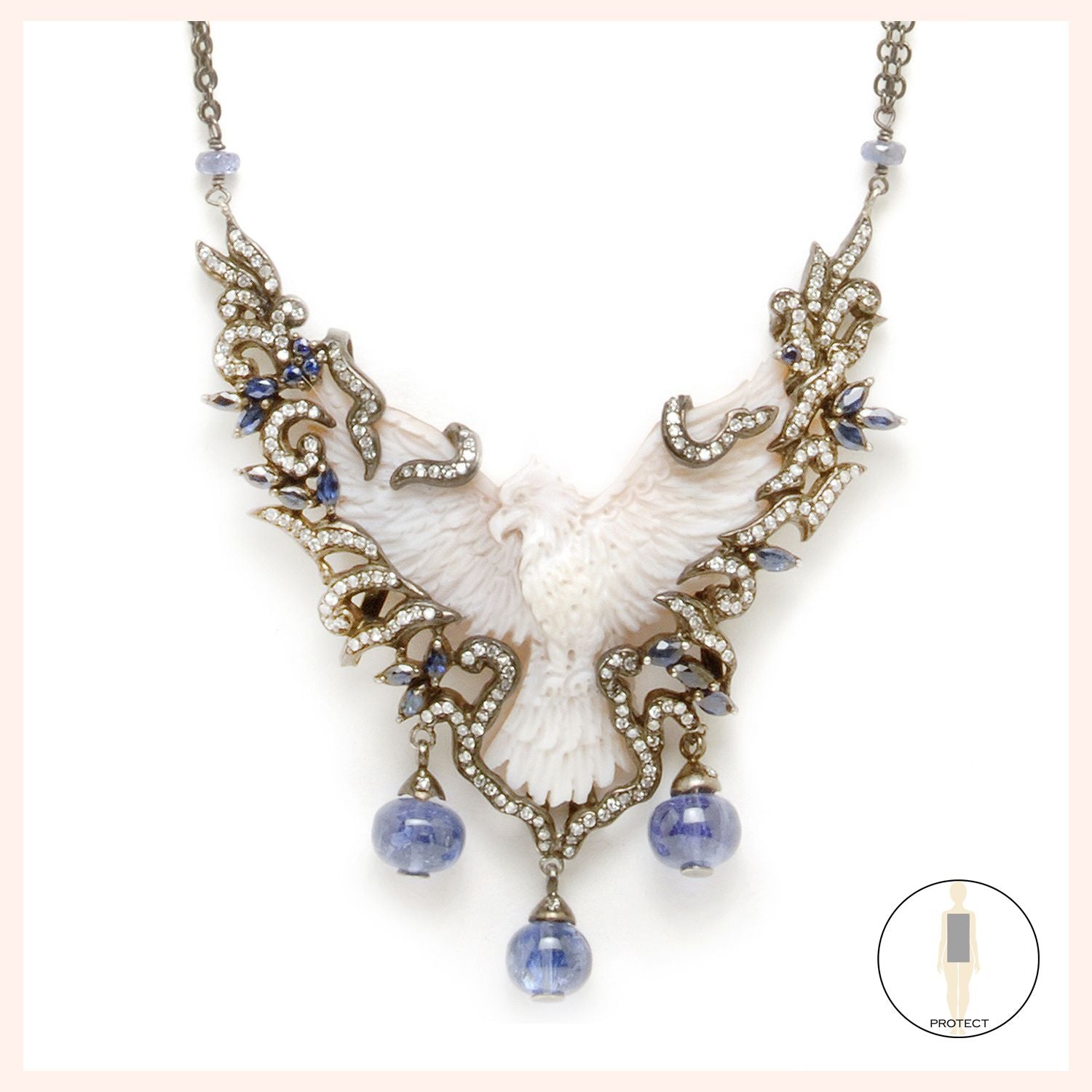Visionary Eagle Necklace: Carole Shashona’s Visionary Eagle Necklace set in silver features an eagle surrounded by black diamonds conveys the powers and messages of the spirit, bestowing freedom & courage to the wearer.
